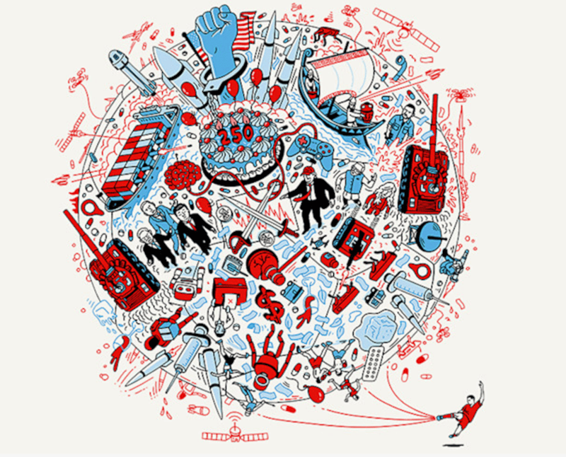 Die Titelseite von "The World Ahead 2026" des Economist ist eine dichte symbolische Warnung vor einem Jahr multipler Krisen und fundamentaler Umbrüche. (15)Sie ist durch eine intensive rot-blaue Farbgebung gekennzeichnet, die das globale Kräftemessen und die innenpolitische Polarisierung symbolisiert. Zahlreiche Ikonen – darunter Panzer, Drohnen, Raketen, ein zerbrochenes Dollarzeichen und schmelzendes Eis – signalisieren, dass 2026 ein Jahr der Eskalation in Geopolitik, Wirtschaft und Klima sein wird. Diese visuelle Sprache ist eindeutig: Der Economist prognostiziert keine Entspannung, sondern eine Verschärfung auf allen Ebenen. (16)