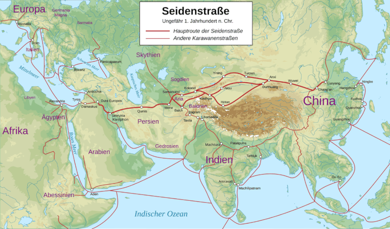 Es gab auch eine Nordwestroute über Afghanistan, sowie eine Nordostroute, die nach Japan führte.